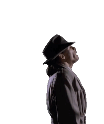 Steven Tyler, wearing a fedora, shouts 'Yeah Yeah' with his mouth wide open, capturing an iconic rock moment.