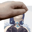 Yelan from Genshin Impact receives a gentle head pat, a cute and endearing animated sticker for fans.