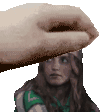 Pixel art sticker of Melissa from Yellowjackets, featuring a hand reaching out towards her.