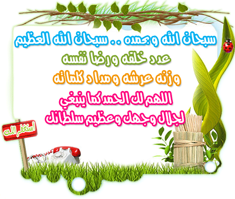An animated sticker featuring beautiful Arabic Islamic phrases of praise, remembrance (Dhikr), and seeking forgiveness, set against a green and white background.