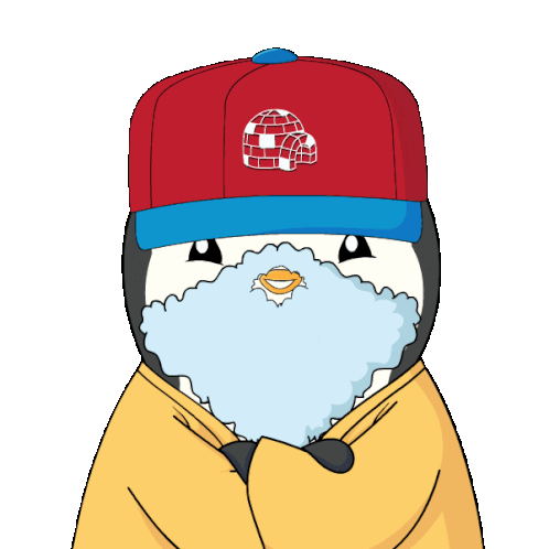 A cute bearded penguin wearing a red cap and yellow blanket nods in agreement, saying yes.
