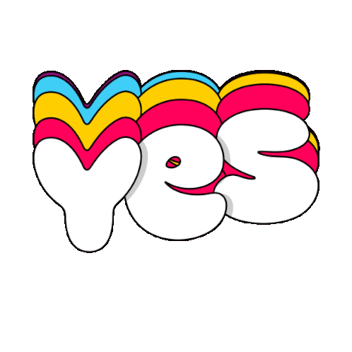 An animated sticker featuring the word 'Yes' with vibrant, layered rainbow-colored stripes that move dynamically.