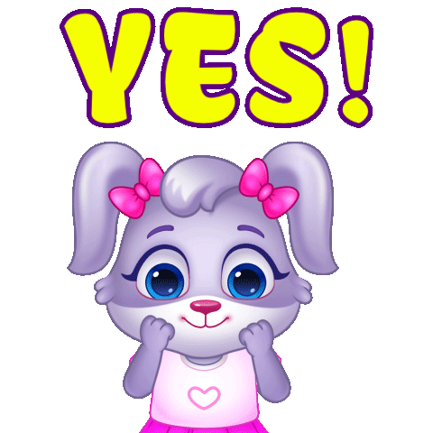 a cartoon rabbit with a pink bow on her ears says yes