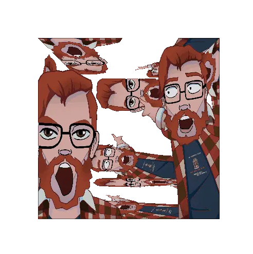 Sammy Yiik, the character from Yiik A Post Modern RPG, smiling with a red hat. A pixel art sticker.