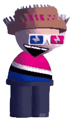 Yo Party Boi, a vibrant cartoon character with a hat and 3D glasses, dances energetically with a wide smile.