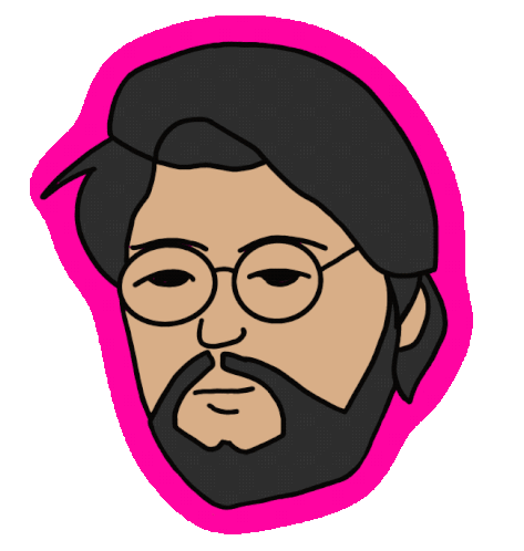 An animated cartoon sticker featuring the head of Yogekko Gekkopog, a man with a beard, mustache, and round glasses.