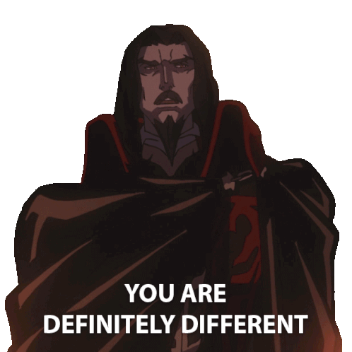 Vlad Dracula Tepes from Castlevania states, 'You are definitely different,' with a serious expression.