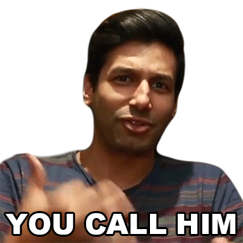 Kanan Gill makes a "call me" gesture with his hand, accompanied by the text "YOU CALL HIM", suggesting a phone call.