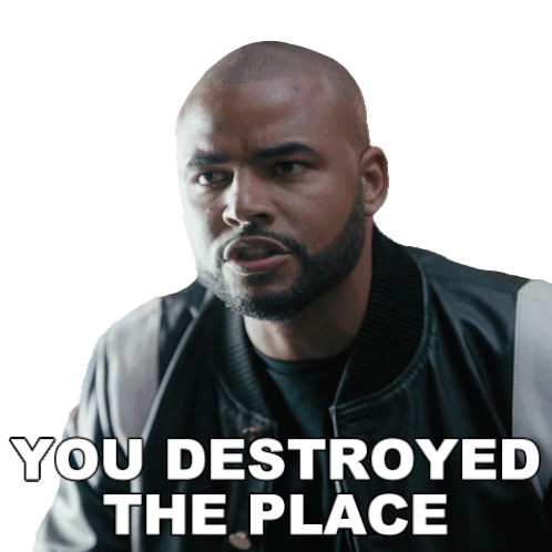 Kane (Redaric Williams) confronts someone with a serious expression, accusing them, "You Destroyed The Place."