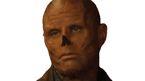 a man with a skull on his face is looking at the camera