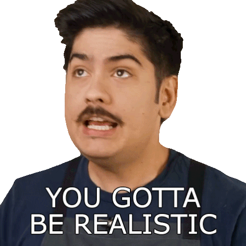 Victor Nevárez delivers the phrase "You gotta be realistic" with a smile, emphasizing the need for practicality.