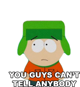 Kyle Broflovski from South Park looks worried, asking viewers to keep a secret with the caption "You Guys Can't Tell Anybody."