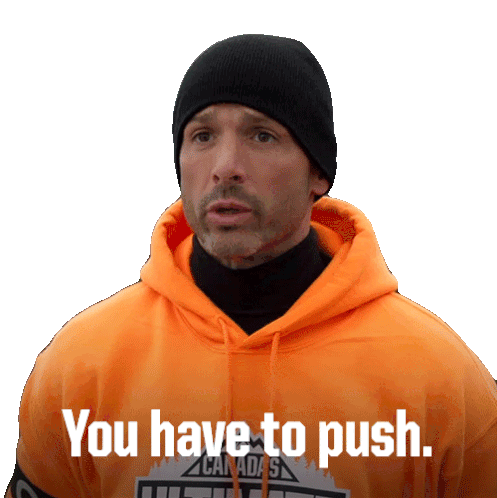 Dominic Kehoe, wearing an orange hoodie and black beanie, delivers an encouraging message: 'You have to push.'
