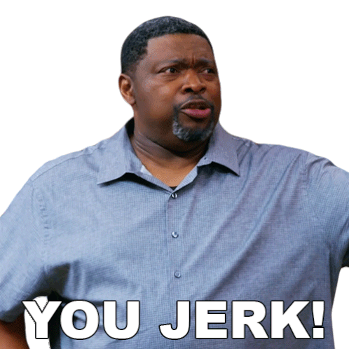 Curtis Payne from House of Payne reacts with a disgusted expression, saying 'You Jerk!' in this animated sticker.