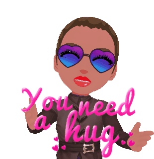 A cute animated sticker featuring a character with heart-shaped glasses offering a warm hug with the text 'You need a hug'.
