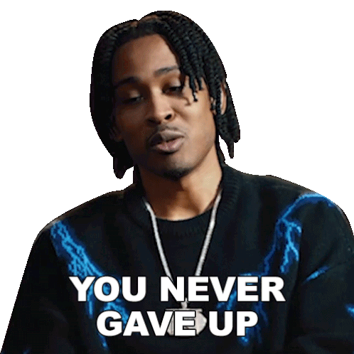 Traetwothree expresses gratitude, saying 'You Never Gave Up On Me' while wearing a distinctive lightning bolt sweater.