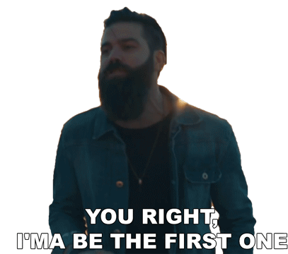 Jordan Davis, the country singer, confidently declares 'You right, I'ma be the first one' in this animated sticker.
