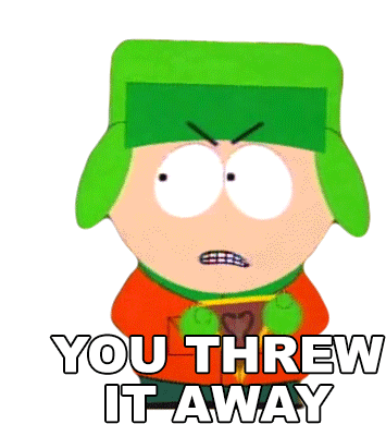 Kyle Broflovski from South Park angrily exclaims 'YOU THREW IT AWAY' with a shocked expression.
