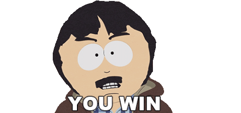 Randy Marsh from South Park looks frustrated with the caption 'YOU WIN', expressing defeat or resignation.
