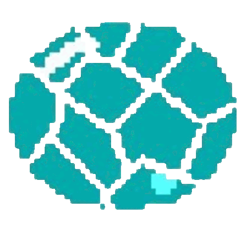 a pixel art drawing of a globe with a blue circle in the middle .