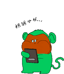 A cute green monkey-like character with puffed cheeks intently analyzes data on a tablet, with glowing lights indicating deep thought.
