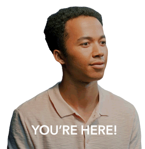 Raymond Cham Jr. as Wolf from Sort Of, looking surprised and saying 'You're Here!' upon someone's arrival.
