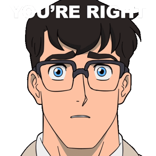 Clark Kent from My Adventures with Superman reacts with a surprised expression, acknowledging "You're Right".