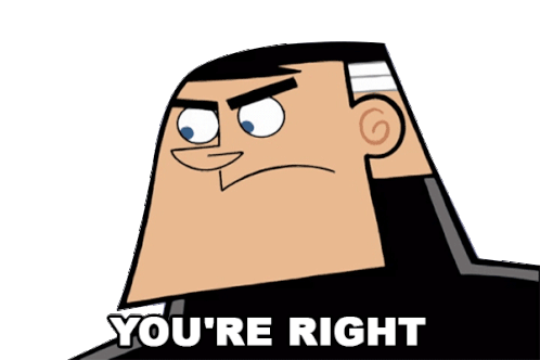 Jack Fenton from Danny Phantom sternly agrees, stating 'You're Right' with a determined expression.
