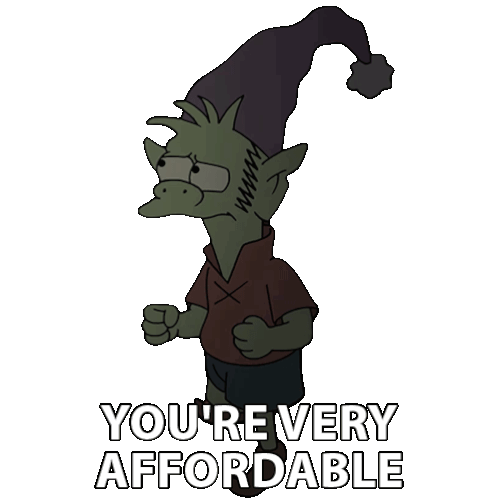 Elfo from Disenchantment, voiced by Nat Faxon, delivers the line "You're very affordable" with a humorous, sarcastic tone.