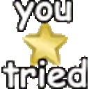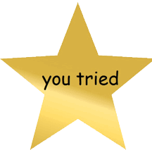 A golden star sticker that displays 'you tried' and then its mirrored version, 'bsint uoy', celebrating effort.