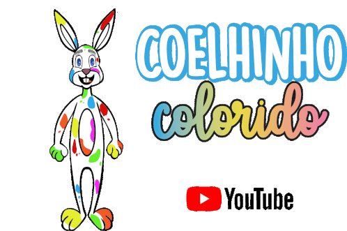 Coelhinho Colorido, the colorful bunny from Youtubekids, waves happily next to the YouTube logo.