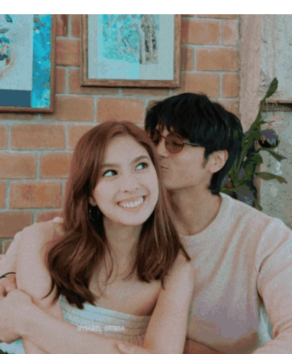 Miguel Tanfelix affectionately kisses Ysabel Ortega (Ysa Guel) on the cheek, sharing a sweet moment.