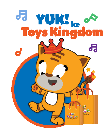 a cartoon of a cat with a crown and the words yuk ke toys kingdom above it