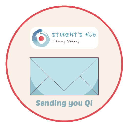 An animated envelope opens to reveal a message from Student's Hub Zhineng Qigong, sending positive Qi.