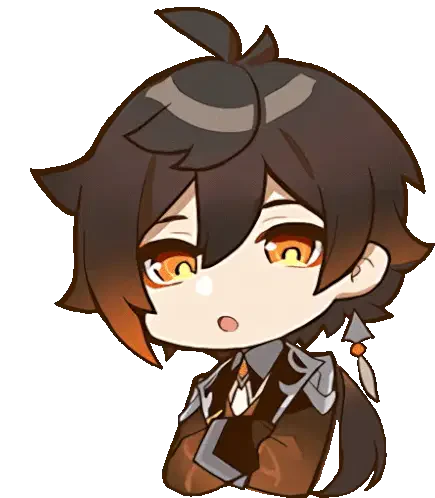 Zhongli from Genshin Impact ponders with 'HMM...' above his head, showing a thoughtful or confused expression.