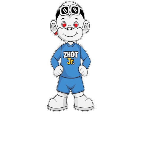 a cartoon character is wearing a shirt that says " zhot jr. "