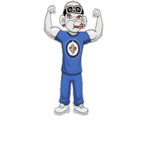 a cartoon character wearing a blue shirt with a canadian maple leaf on it