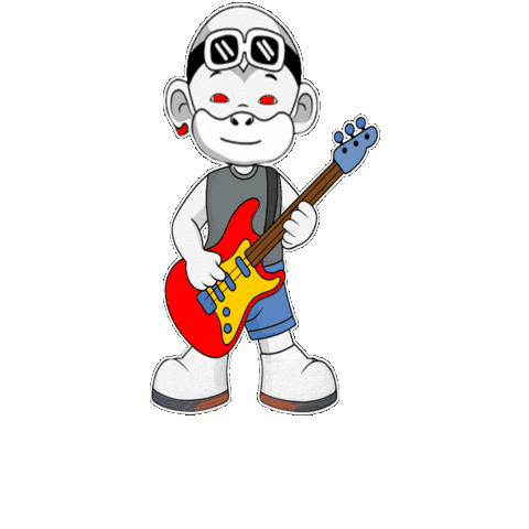 a cartoon character is holding a red guitar and wearing sunglasses