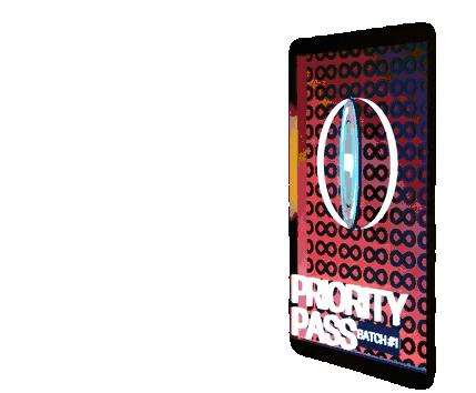 Animated digital card for Zoop Priority Pass Batch 1, featuring 'Collect to Connect' text and a rotating design.