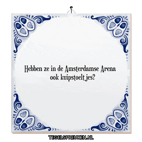 a blue and white tile that says hebben ze in de amsterdamse arena ook kuipstoeltjes