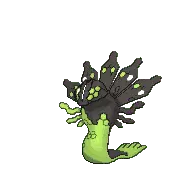 Animated pixel art sticker of Zygarde in its powerful 100% Forme, featuring its dark body and vibrant accents.