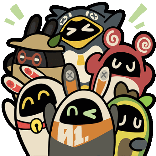 a group of cartoon characters including one with the number 1