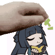 a hand is petting a cartoon girl 's head while she is reading a book .